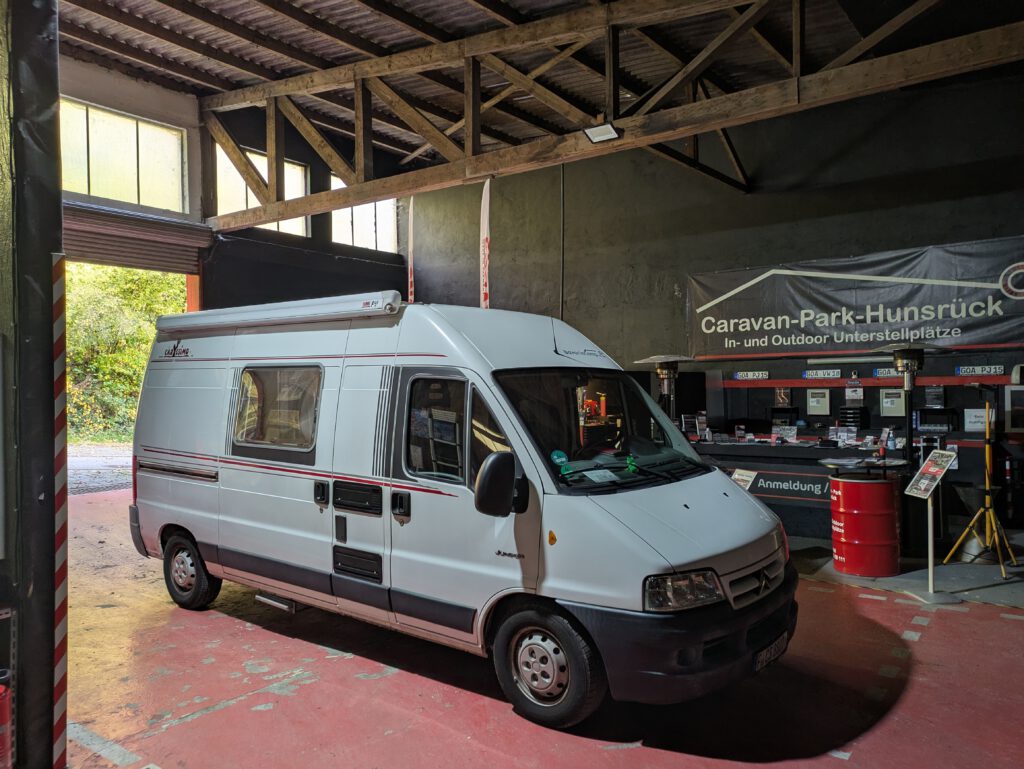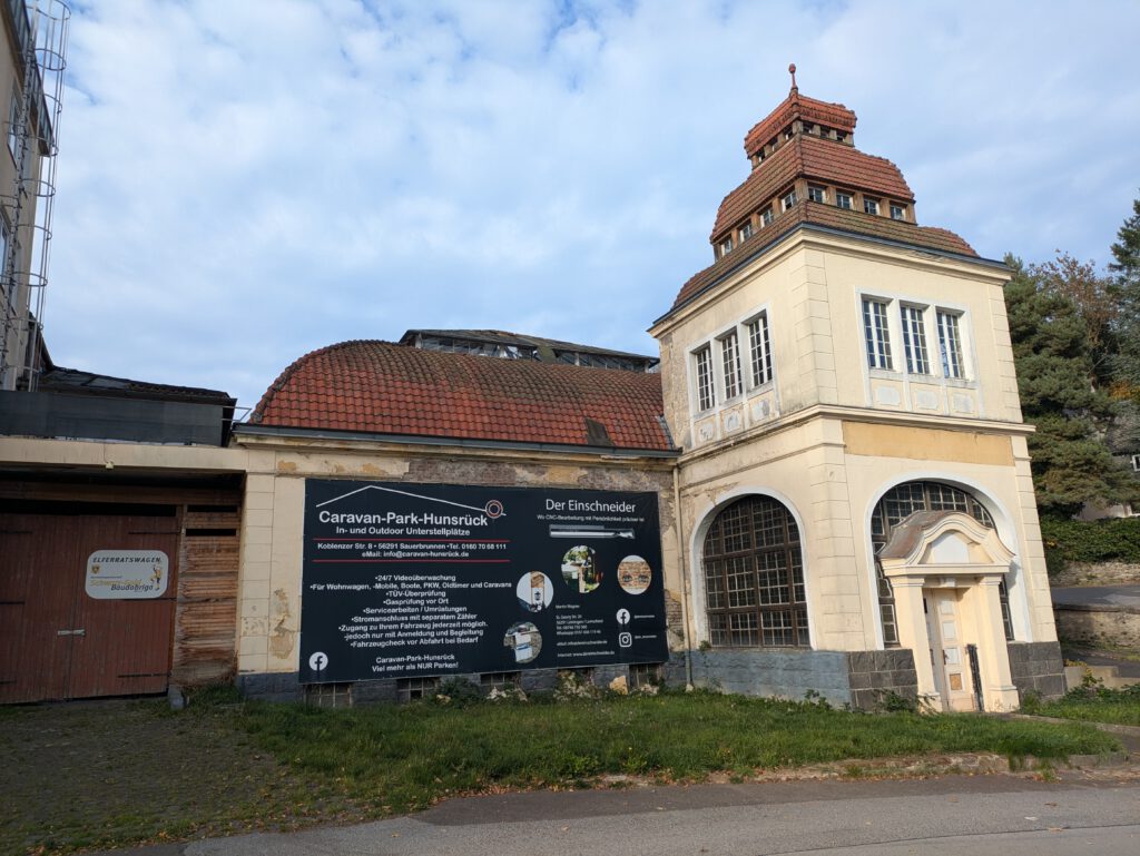 Da sind wir wieder, in der ehemaligen Mineralwasserfabrik Sauerbrunnen, seit einigen Jahren Home of „Caravan Park Hunsrück“ und seit je her Froggys Winterquartier: